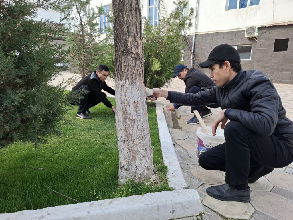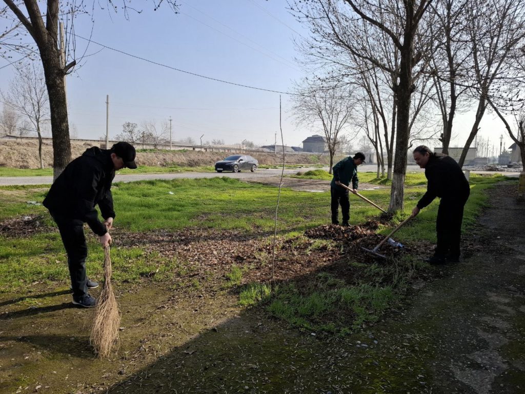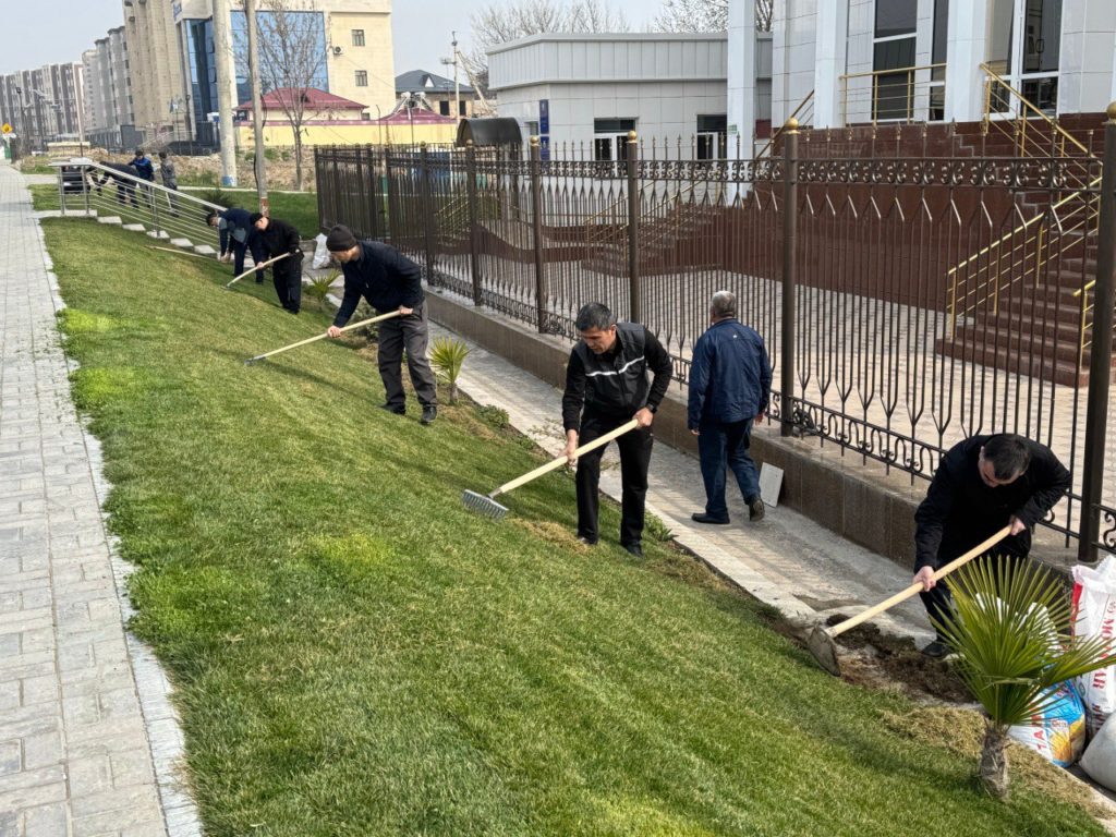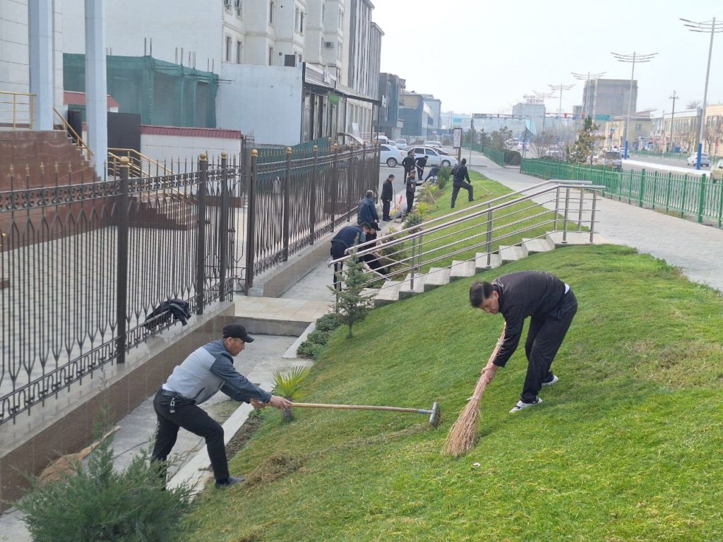 Shuningdek, ko‘cha va yo‘laklar tartibga keltirildi, daraxtlar, butalar oqlandi, xizmat xonalarida sanitariya-gigienik ishlar amalga oshirildi, obodonlashtirish jarayonida to‘plangan chiqindilar belgilangan joylarga olib chiqilishi ta’minlandi.